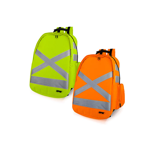 FEATURES • Heavy duty hi vis site backpack• Front X pattern reflective tape design with additional side panel tape• 210D lined, main zippered com...